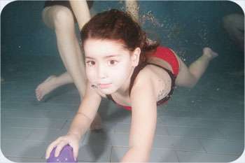 הסתכלות על העולם בגובה העיניים - במים התינוק מוחזק במצב אנכי ע"י ההורים וכל שאר האנשים והעצמים במים הם בגובה עיניו ולא מעליו כפי שהוא רואה אותם ביבשה.